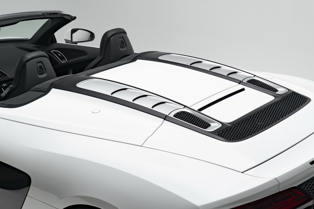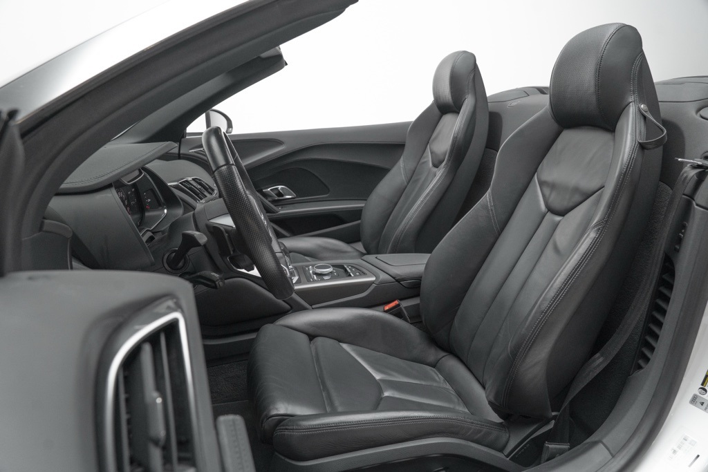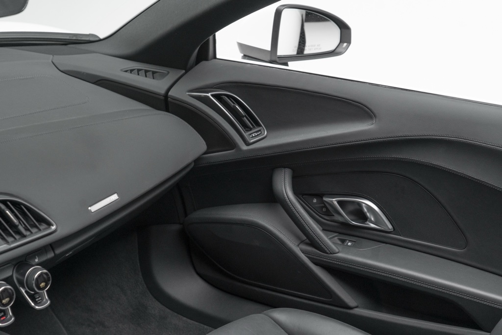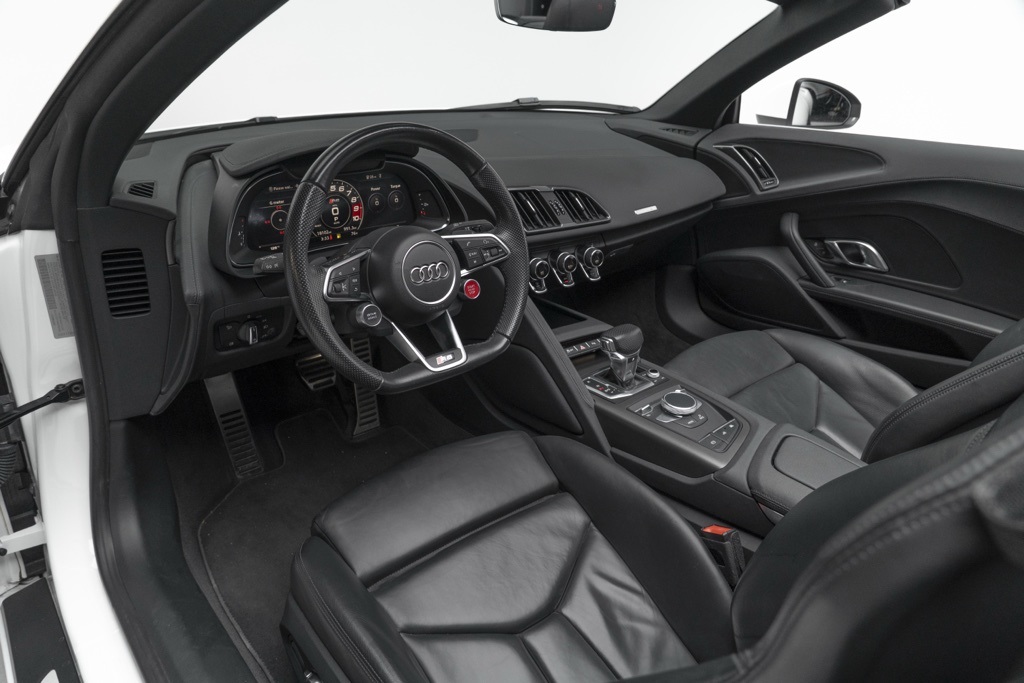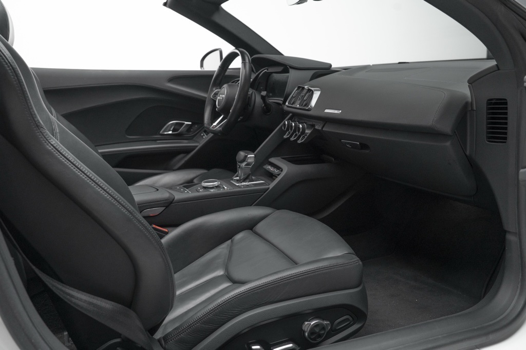 Powered by a naturally aspirated 5.2L V10 FSI DOHC 40V LEV3-LEV160 rated at 562 hp and paired with a 7-Speed Automatic S tronic transmission, this R8 offers potent straight-line performance and quick gear changes. The rear-wheel-drive layout emphasizes a purist handling character, while the odometer shows 18,095 miles, reflecting its limited use as a performance convertible.