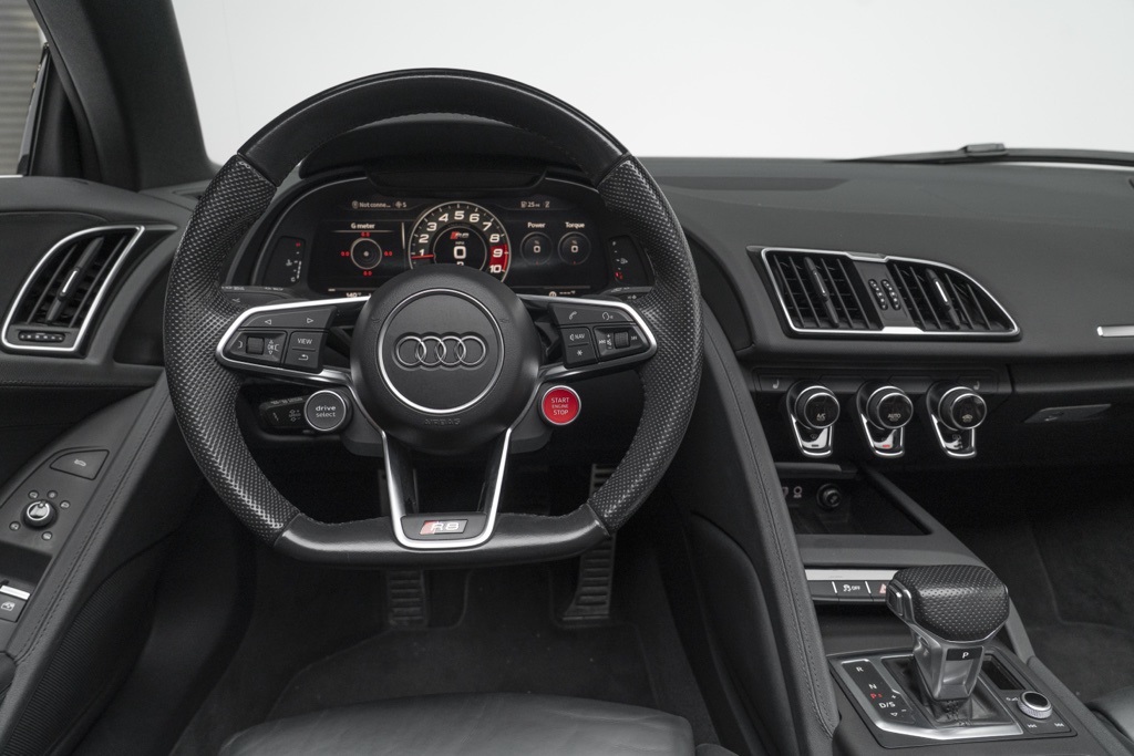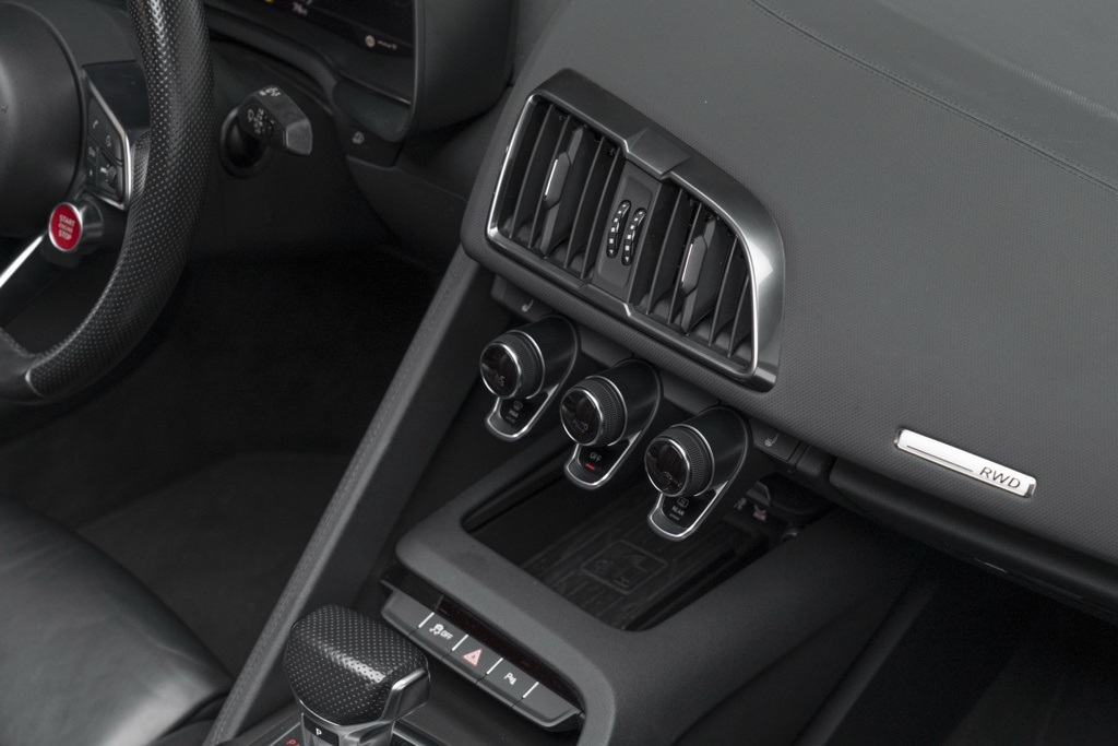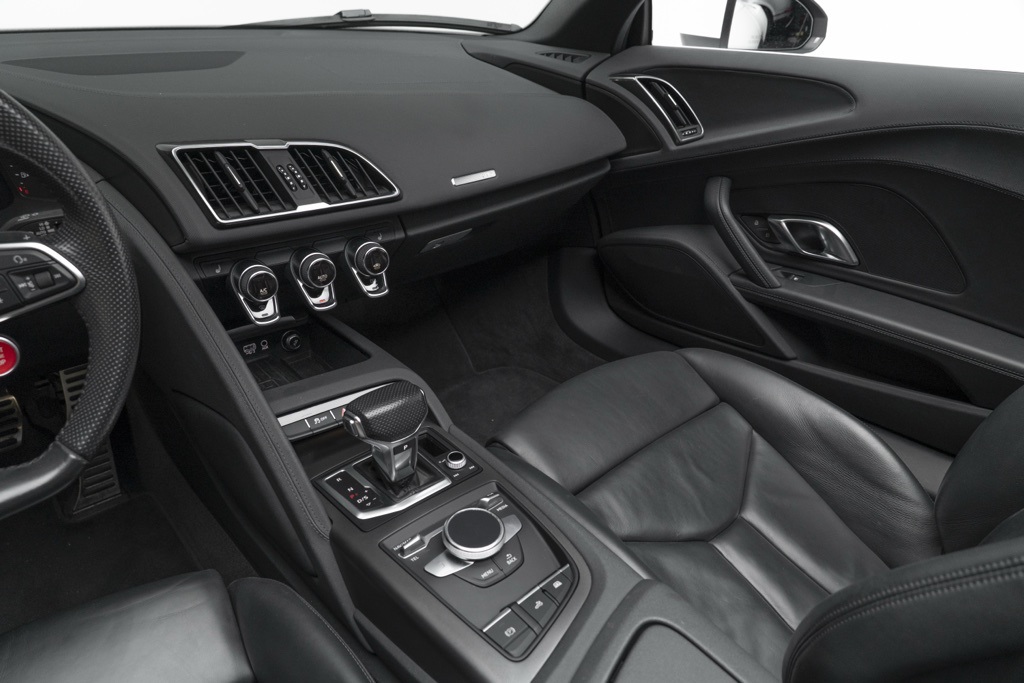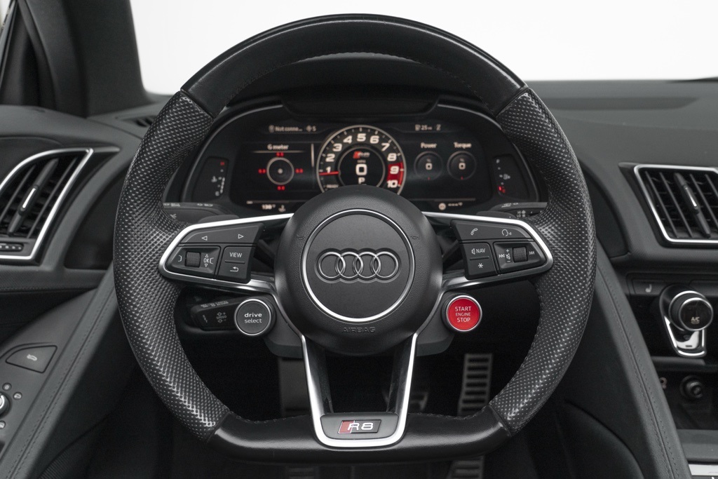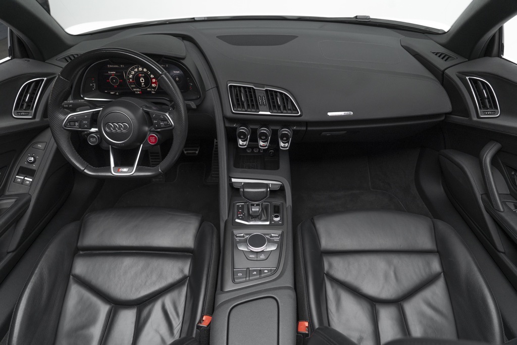 Powered by a naturally aspirated 5.2L V10 FSI DOHC 40V LEV3-LEV160 rated at 562 hp and paired with a 7-Speed Automatic S tronic transmission, this R8 offers potent straight-line performance and quick gear changes. The rear-wheel-drive layout emphasizes a purist handling character, while the odometer shows 18,095 miles, reflecting its limited use as a performance convertible.