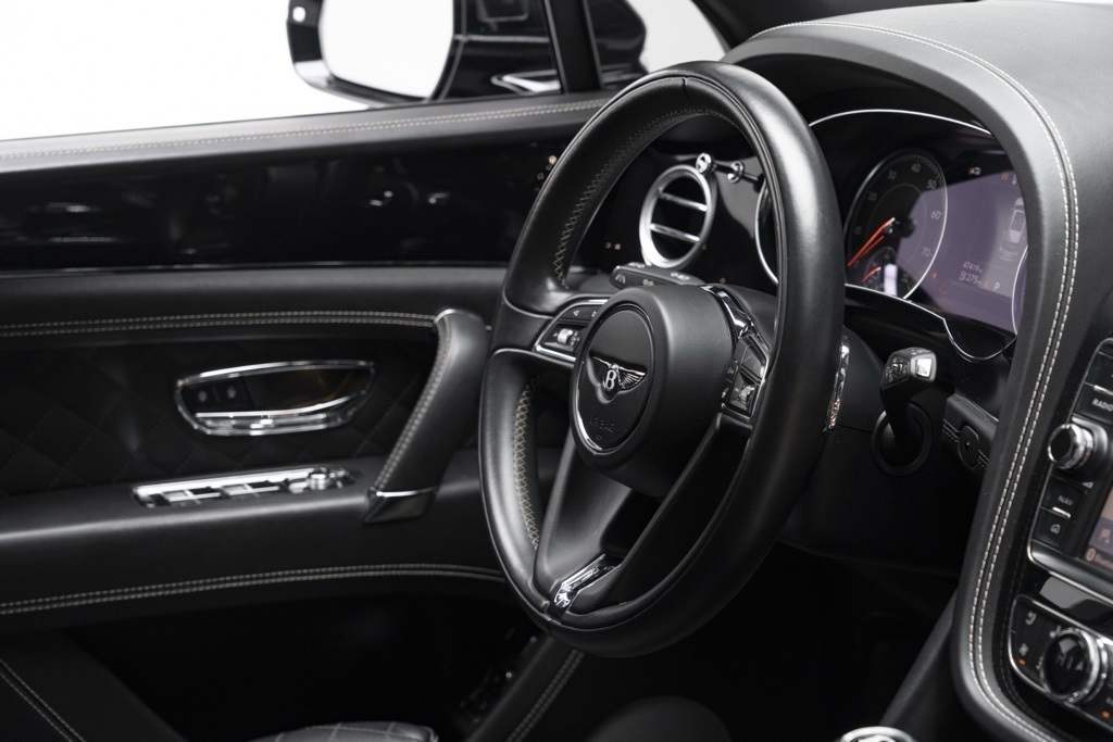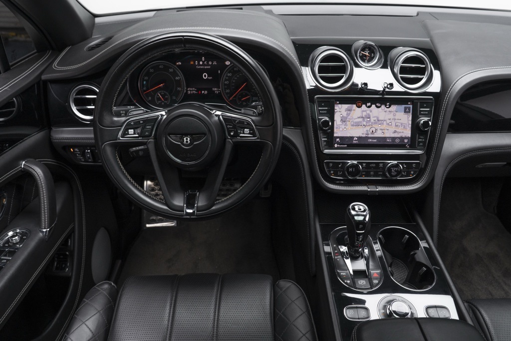 On the road the Bentayga’s 6.0L 12-cylinder PDI turbocharged DOHC engine and 8-speed automatic transmission provide broad, effortless torque delivery, while full-time AWD supports confident traction in varied conditions. The 4-door sport utility body combines interior space with grand touring composure, and the odometer shows 46,889 miles—useful context for evaluating use and remaining life cycles. All technical points above are factory characteristics of this W12 Bentayga.