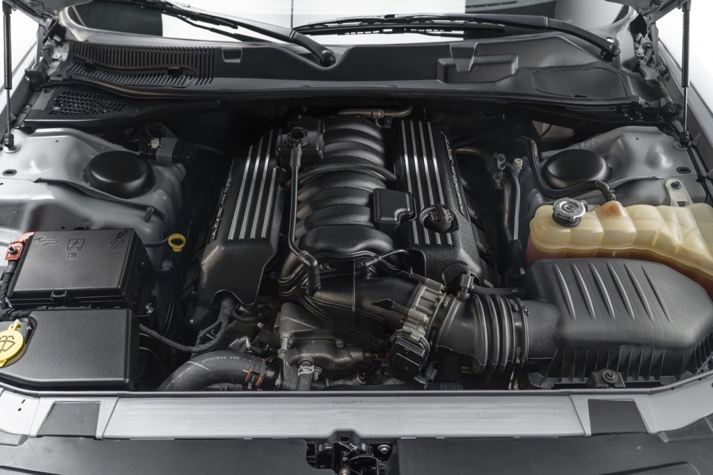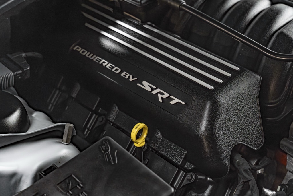 Under the skin is the SRT HEMI 6.4L V8 MDS paired with an 8-speed automatic transmission, driving the rear wheels for a classic muscle-car driving dynamic. The odometer reads 24,230 miles and the vehicle retains its factory 2D coupe RWD configuration. Equipment and technical specification are consistent with factory delivery for the R/T Scat Pack model.