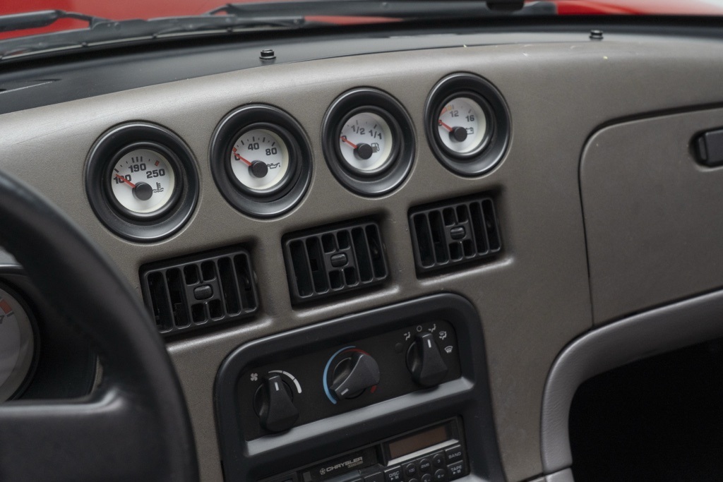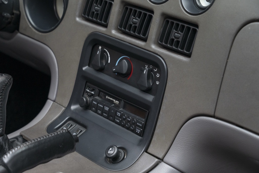 Behind the wheel the Viper’s 8.0L V10 and six-speed manual transmission deliver an immediate, analogue driving experience tailored to enthusiasts who value mechanical engagement and rear-wheel dynamics. The car’s odometer shows 5,061 miles, a factual indicator of limited use rather than a description of maintenance; the convertible body and drivetrain layout emphasize an unfiltered connection between driver and road.