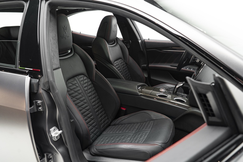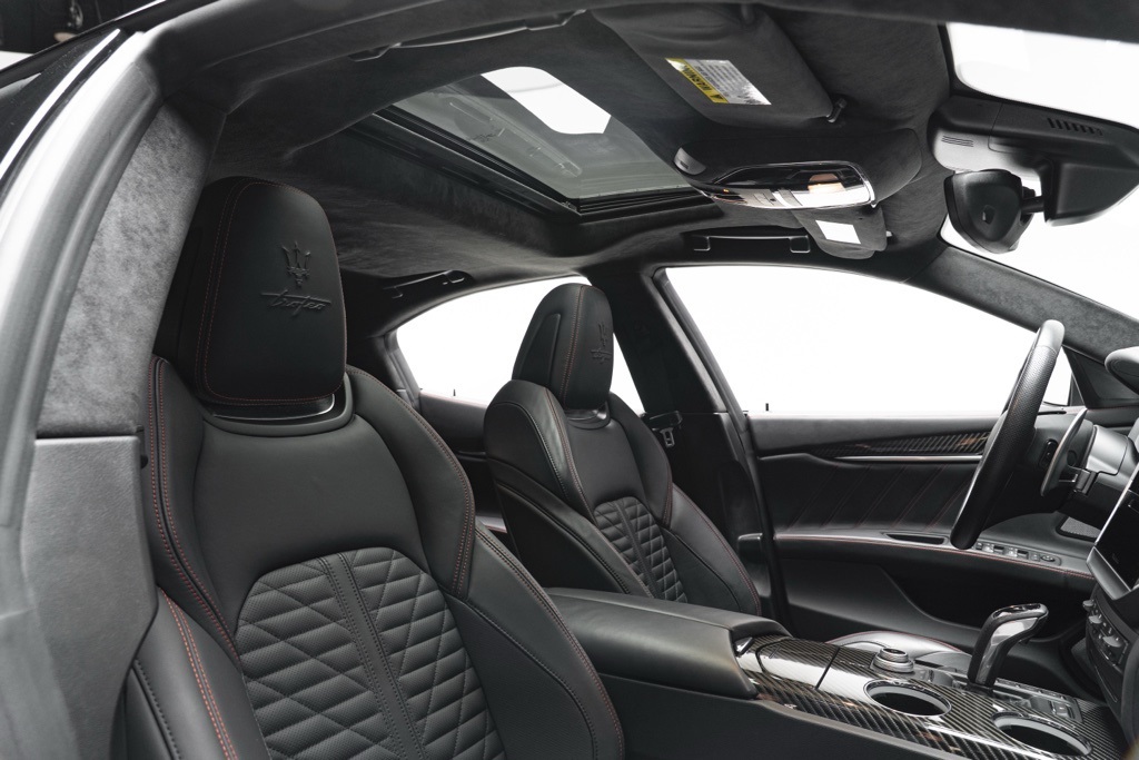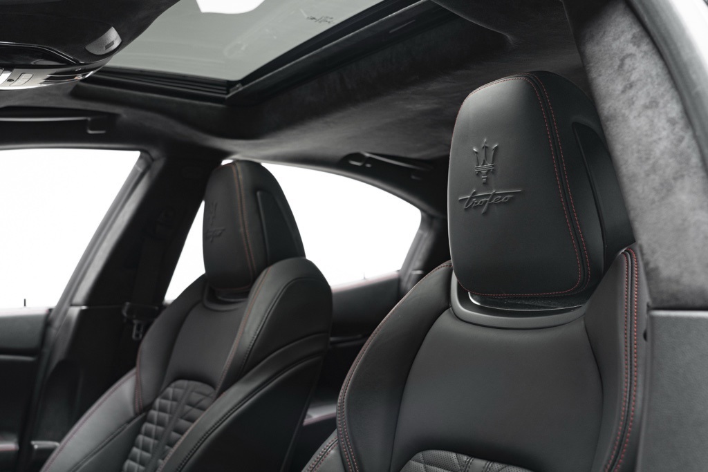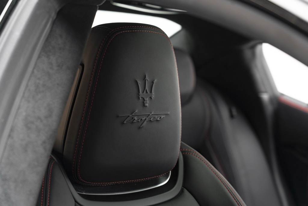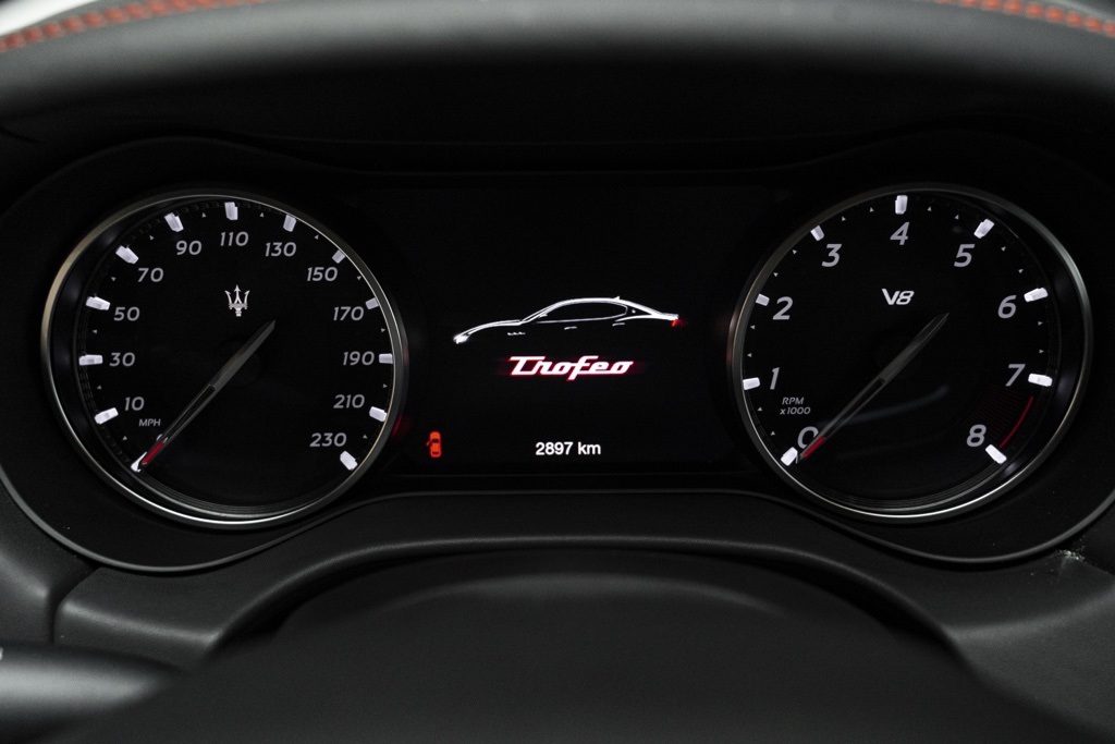 Under the hood is the factory 3.8L V8 Twin Turbocharged engine coupled to a ZF 8-Speed Automatic transmission, driving the rear wheels in a 4-door sedan layout. Those factory technical specifications define the Trofeo’s performance orientation and mechanical character. The odometer reading confirms minimal use, and the vehicle’s specification reflects Maserati’s intent for dynamic driving and grand touring capability.