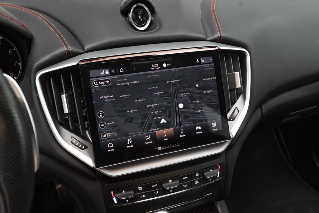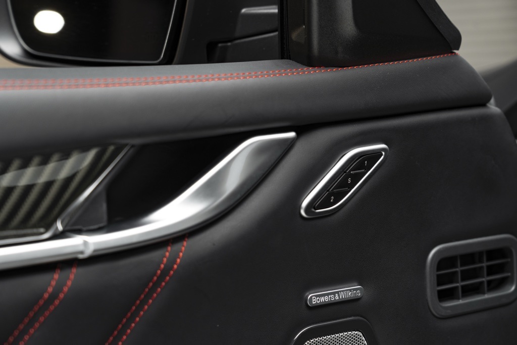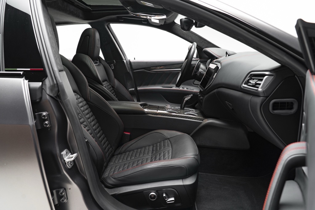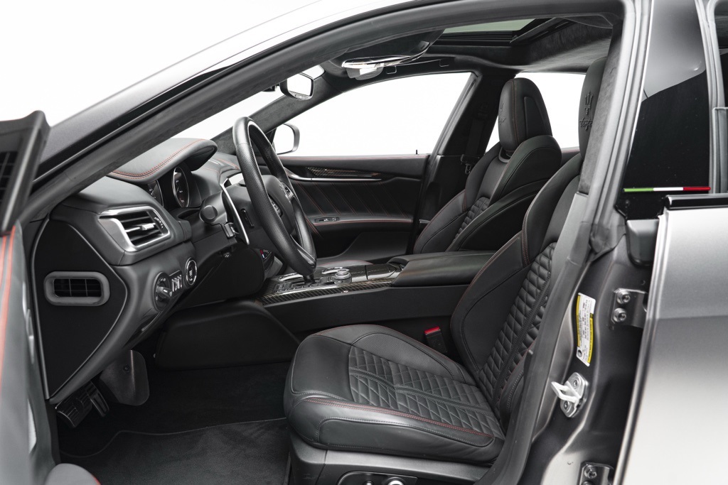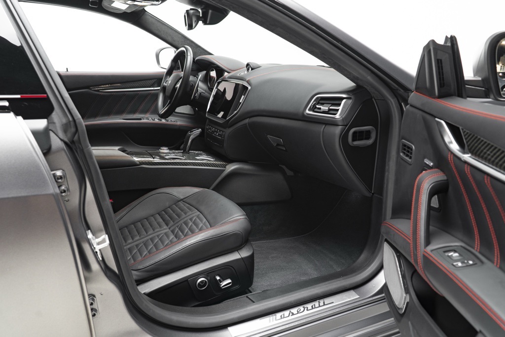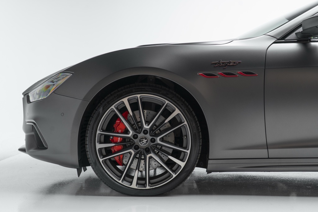 Under the hood is the factory 3.8L V8 Twin Turbocharged engine coupled to a ZF 8-Speed Automatic transmission, driving the rear wheels in a 4-door sedan layout. Those factory technical specifications define the Trofeo’s performance orientation and mechanical character. The odometer reading confirms minimal use, and the vehicle’s specification reflects Maserati’s intent for dynamic driving and grand touring capability.