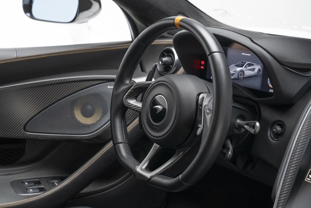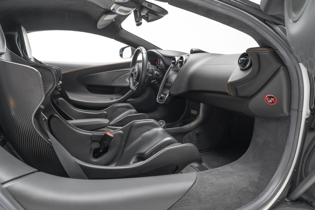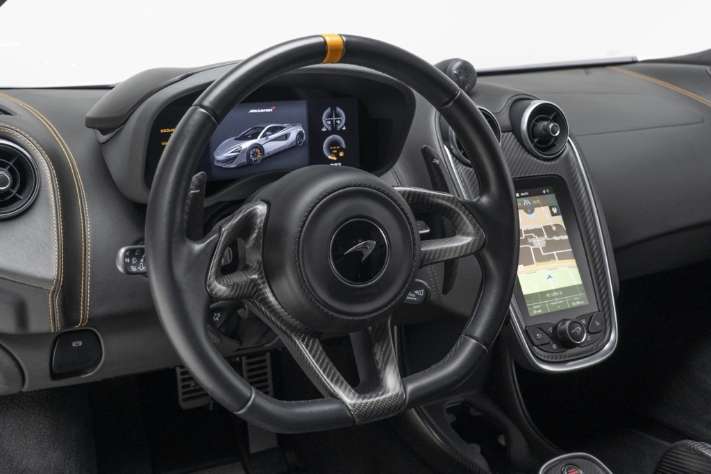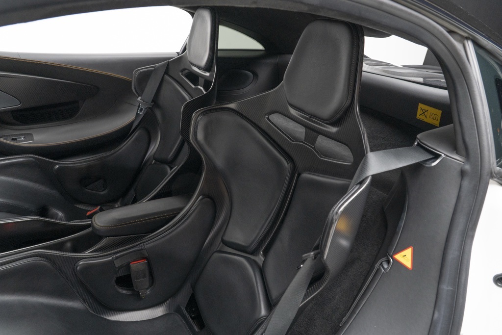 Well equipped from the factory, the car is powered by McLaren’s 3.8L V8 twin-turbocharged engine paired with a 7-speed automatic transmission and rear-wheel drive, a combination engineered for rapid throttle response and high-revving performance. The odometer shows 5,385 miles, reflecting limited use since new; all technical descriptions above are based solely on the vehicle’s factory specifications and recorded mileage.