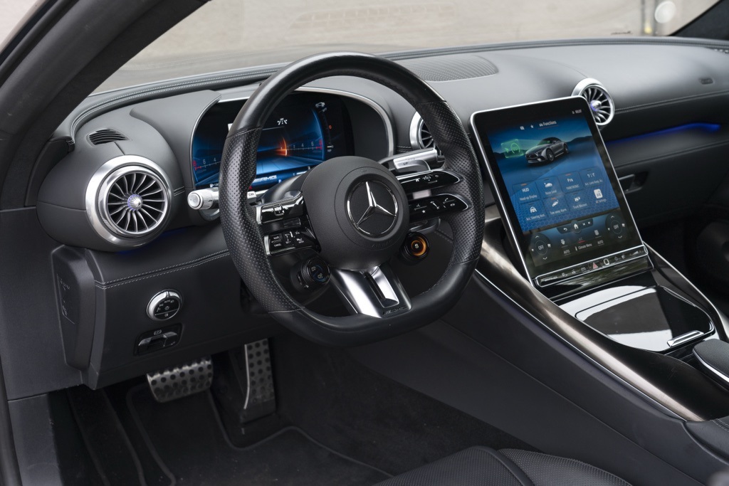 Sport Cars Lux in Miami presents a striking 2022 Mercedes-Benz SL 63 AMG in Gray, a performance-focused grand touring convertible that combines AMG pedigree with modern refinement. This SL 63 AMG pairs unmistakable road presence with a convertible profile ideal for South Florida driving.