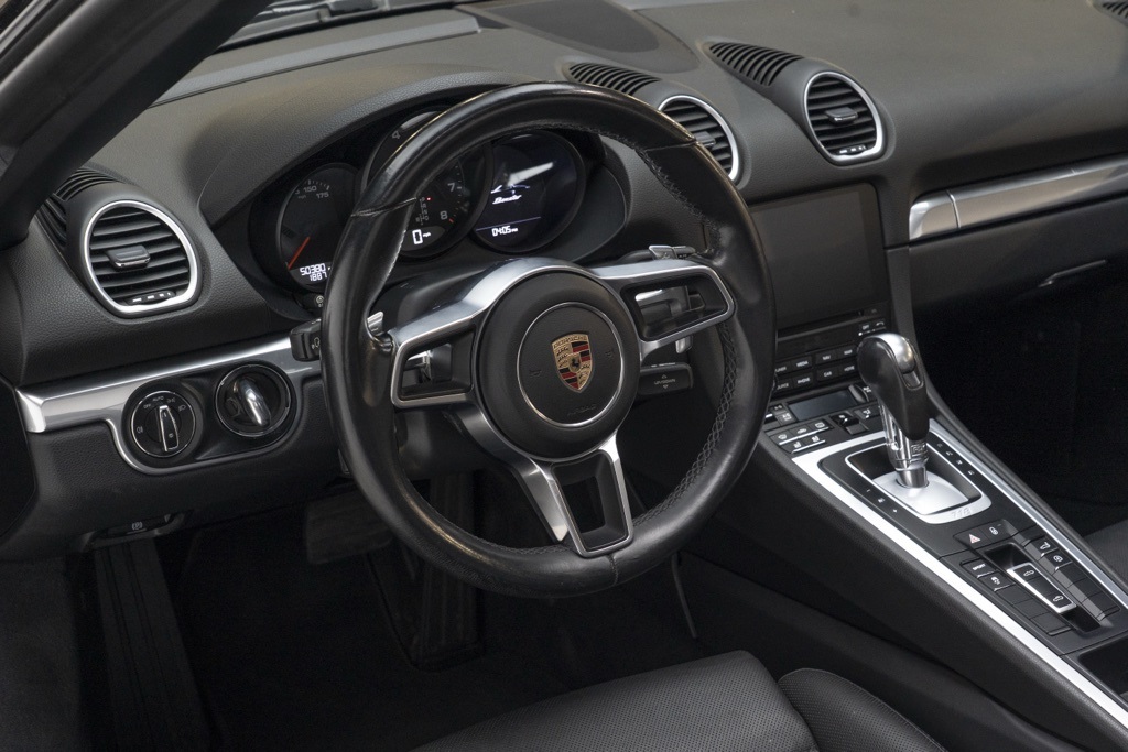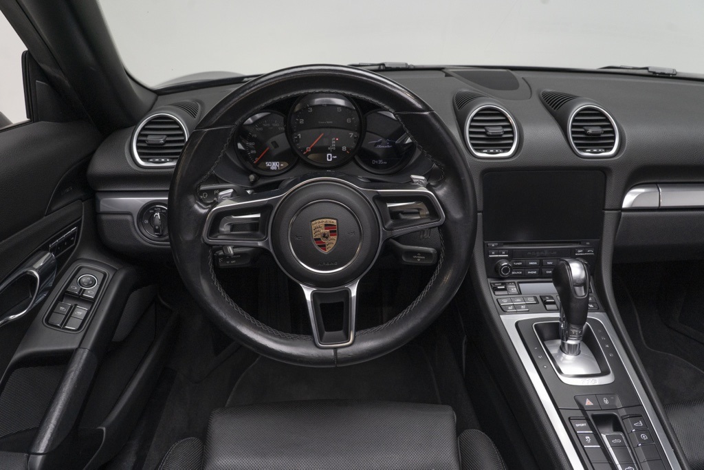 Sport Cars Lux in Miami presents a 2017 Porsche 718 Boxster Base finished in Black, a true two-door convertible that pairs modern mid-engine proportions with Porsche’s focused design language. This example highlights the core Boxster formula in a minimalist Base specification, ideal for drivers who prioritize engagement and pure road feel.