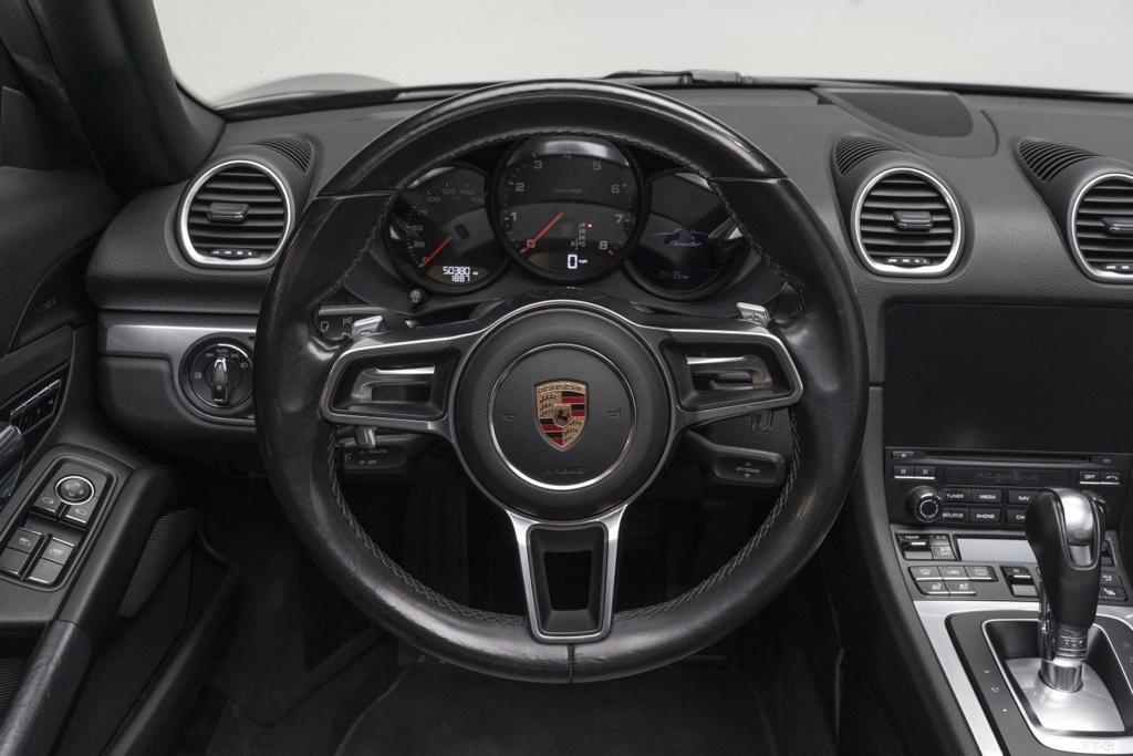 Under the rear deck sits a 2.0L turbocharged engine driving the rear wheels, delivering the responsive power delivery and balanced handling characteristic of the 718 family. The odometer shows 50,355 miles, indicating a substantial amount of road use without asserting any specific service history or condition beyond the recorded mileage. As a Base model, this Boxster presents the essential technical architecture—mid-engine layout, convertible top, and rear-wheel drive—without assuming optional equipment not listed.