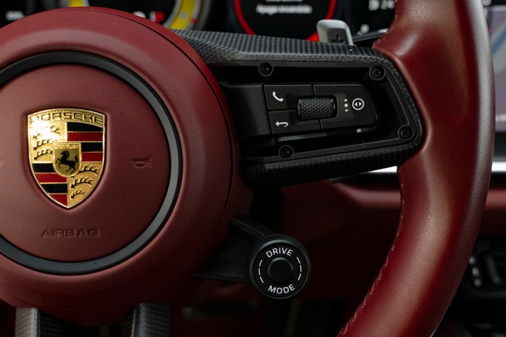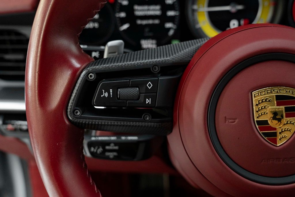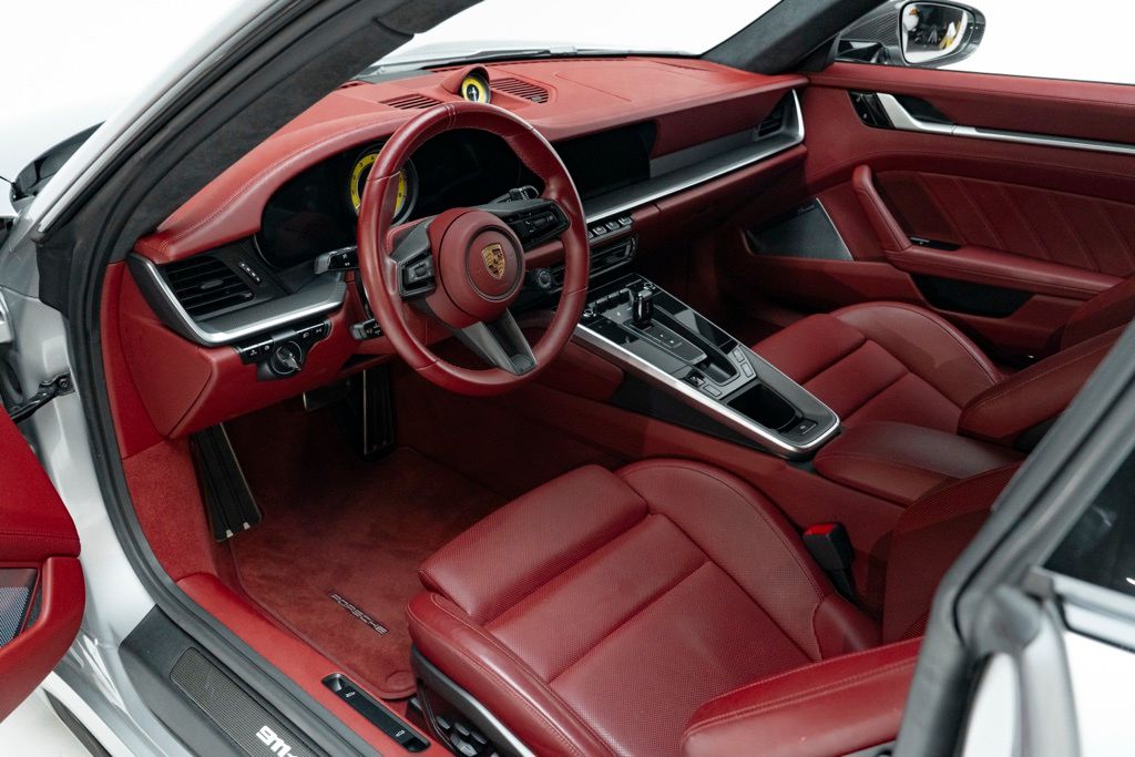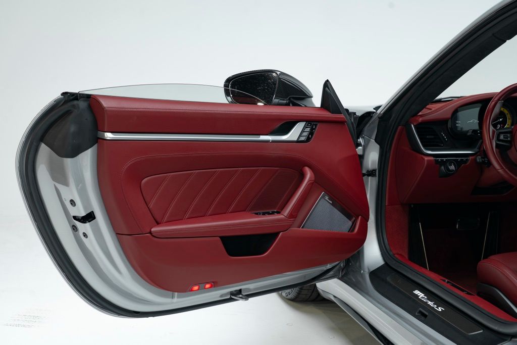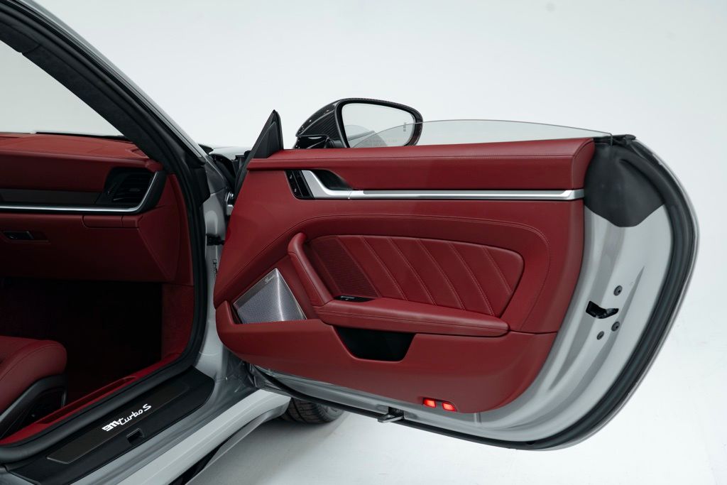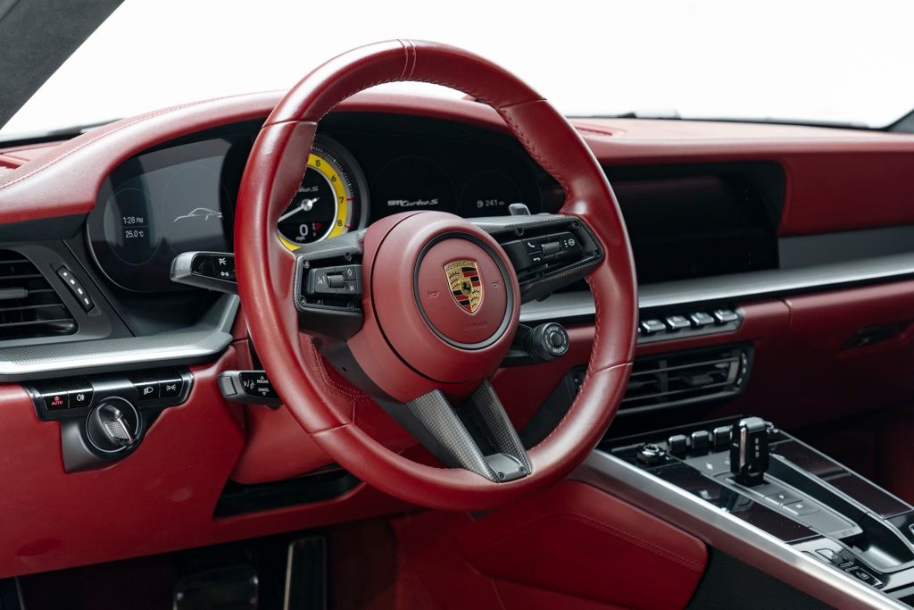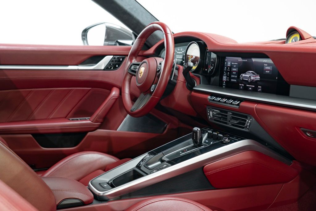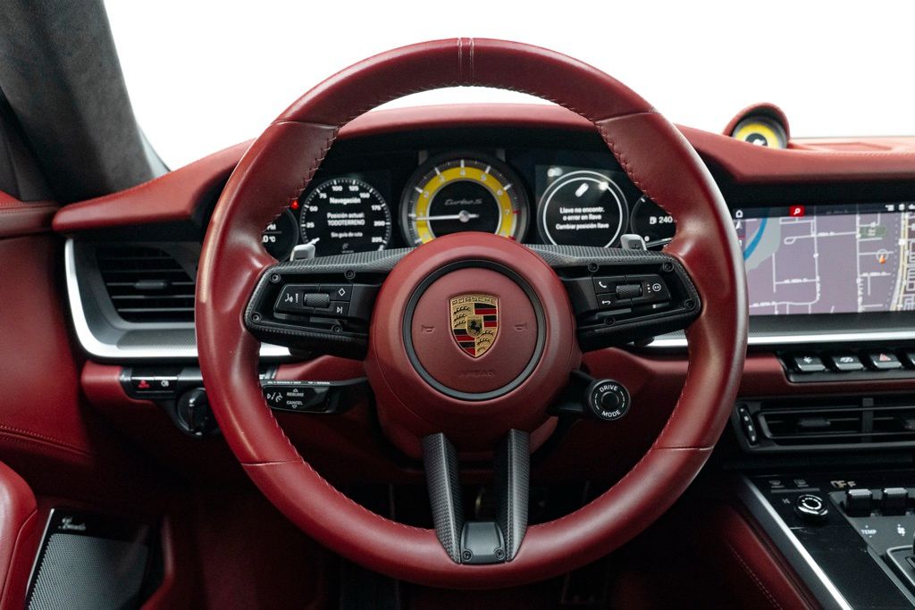 Under the rear deck sits the factory 3.8L H6 turbocharged engine rated at 572 hp, mated to the 8-speed Porsche Doppelkupplung (PDK) transmission and full-time AWD, which together provide precise shifts, immediate throttle response, and confident traction. The odometer reads 7,078 miles, reflecting limited use, and the car presents as a two-door coupe equipped with the standard technical specification for the Turbo S series.
